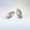 These stud earrings are crafted in silver with a soft, organic oval shape inspired by natural petals. Each stud holds a small champagne diamond for a subtle point of light.