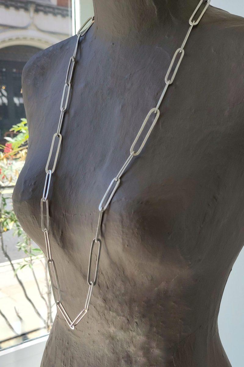 Each link in this metre-long necklace is individually hand-forged in silver so every necklace is slightly different. Made from medium and long links, this has become one of our signature handmade pieces – it looks great with whatever you’re wearing, relaxed in summer, classic in winter and beautifully tactile.