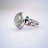 Lunar Ring with Moonstone, Diamond and Green Tourmaline in Fairtrade and Fairmined Platinum