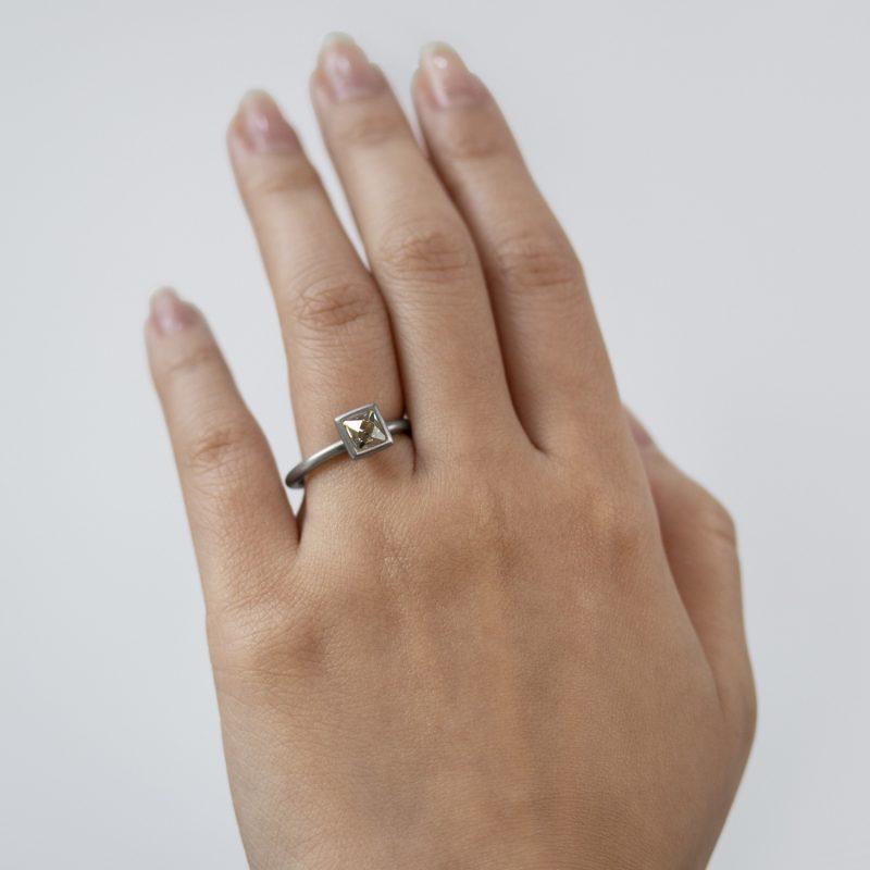 The platinum Pyramid ring has a Gustavo-cut white diamond of 0.86ct and the ring shank is approx. 2.5mm round.
