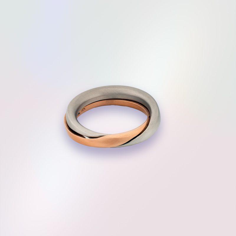 A modern interpretation of the medieval gimmel ring, created from two entwined elements that fit together to become one. When together, your engraved message lies hidden in the heart of the ring.